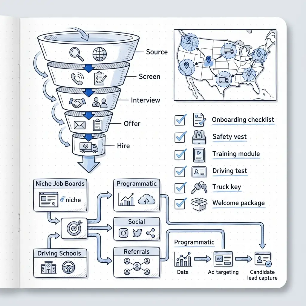 This guide shows where to advertise for truck drivers in 2024–2025 and how to build a recruitment mix that balances relevance, scale and speed. It walks through niche boards, programmatic distribution, social media, driving school partnerships and referral programs, and includes practical metrics, sample funnels and a simple test to run this month. 1. Referrals […]